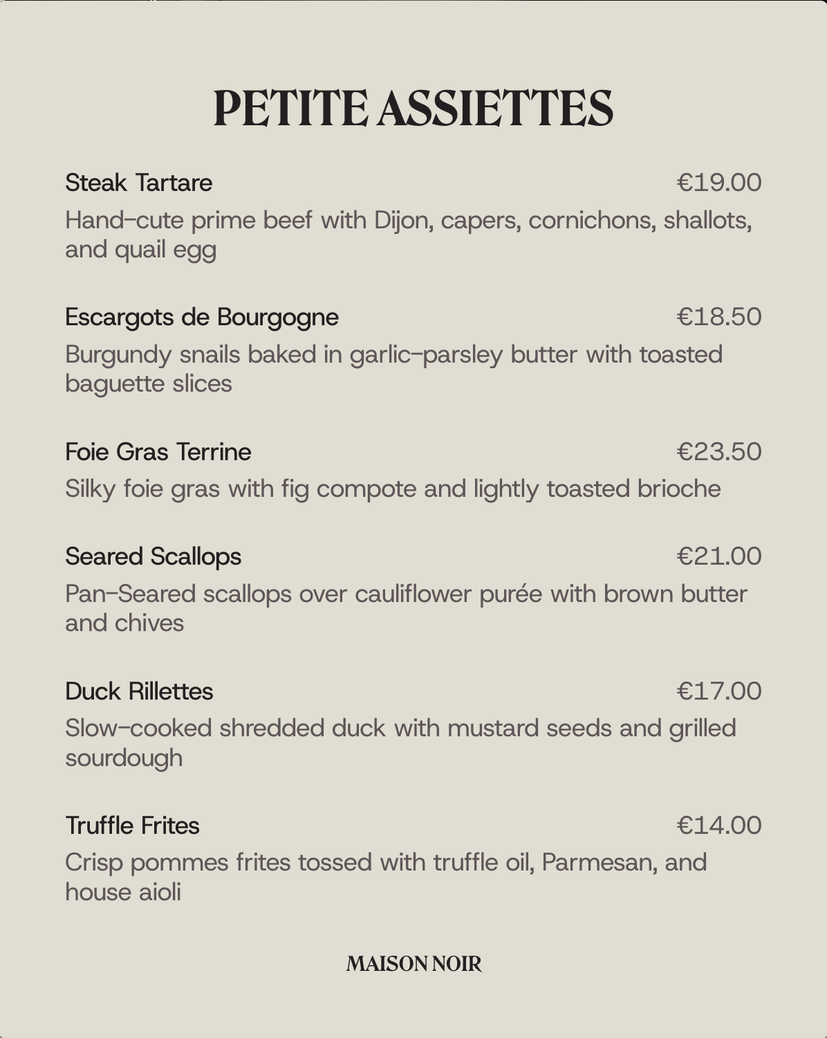 The perfect blend of classic technique and modern creativity. Each bite told a story, and the atmosphere was nothing short of magical.